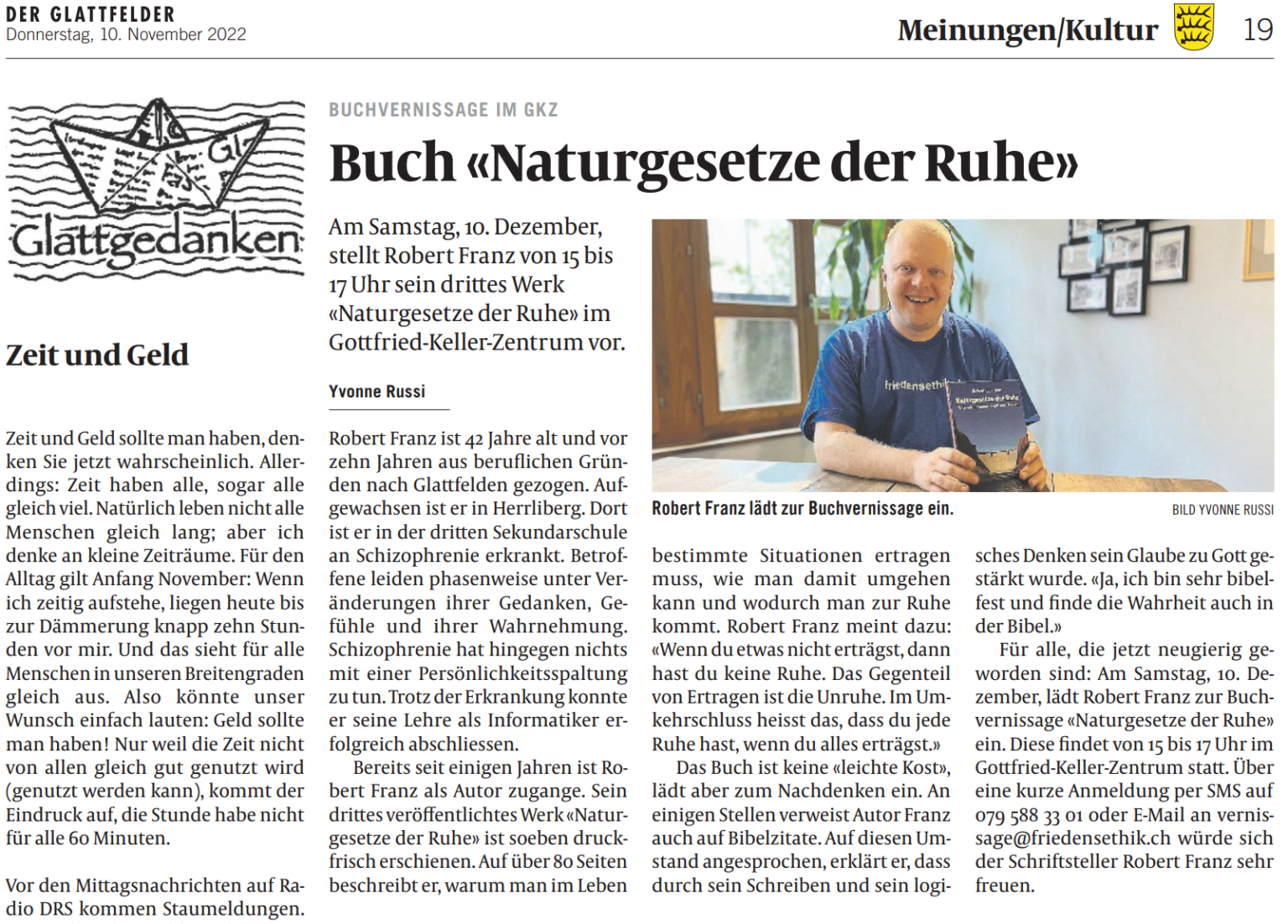 Der Glattfelder hat am 10. November 2022 über mein Buch und mich berichtet